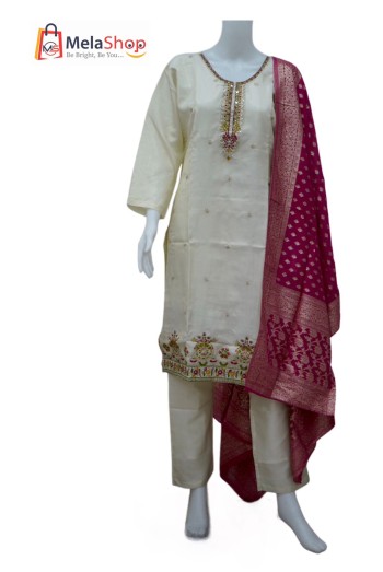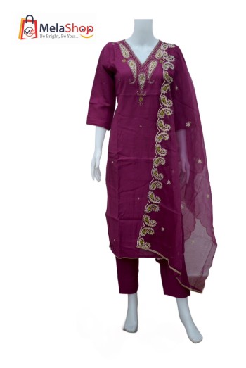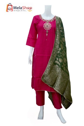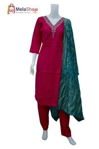 Embroidered Red Kurta , Trouser/Pant & Dupatta Set